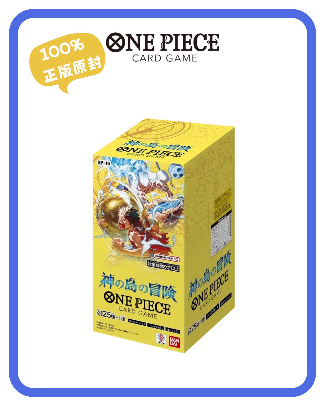 【現貨供應・快速發貨】 本產品為 One Piece Card Game 第15彈「神之島的冒險」 (Adventure on KAMI's Island) 日版原盒。本系列以經典的「空島篇」為核心,見證魯夫與「神」艾涅爾的宿命對決,並收錄大量全新特性的空島勢力卡牌。